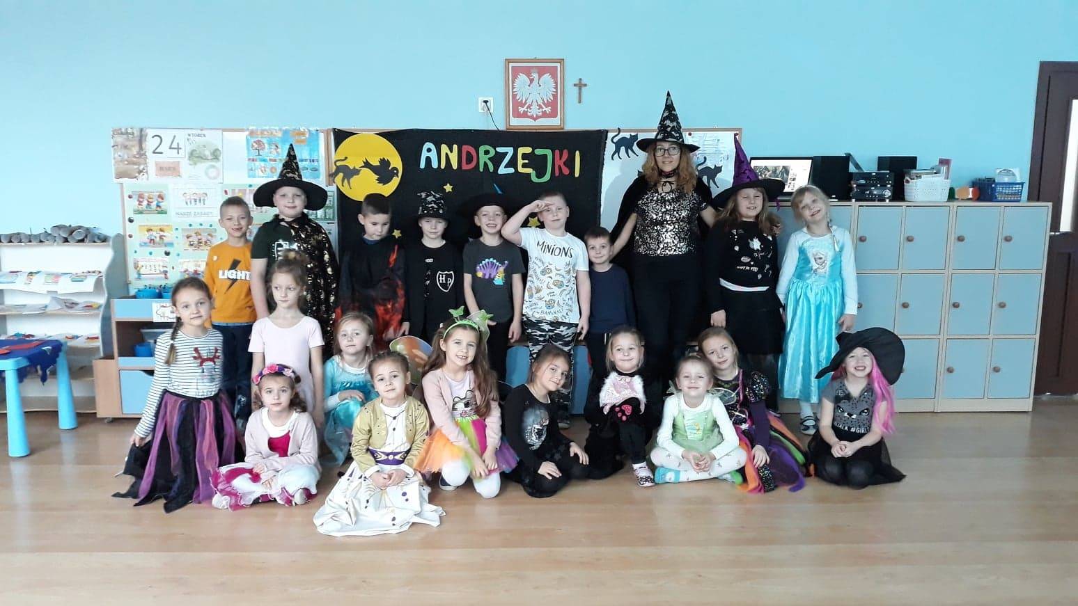 Opublikowano: 01-12-2020W poniedziałek, 30 listopada obchodziliśmy w naszym przedszkolu Andrzejki. W każdej grupie przedszkolaki chciały zobaczyć co czeka je w przyszłości. Przygotowane rekwizyty, dekoracje oraz stroje stworzyły odpowiedni nastrój sprzyjający przepowiedniom. Dzieci poznały znaczenie różnych kolorów, liczb, magicznych przedmiotów. Ustawiały buty, aby sprawdzić, który chłopiec pierwszy się ożeni i która dziewczynka pierwsza wyjdzie za mąż. Za pomocą przygotowanych obrazków sprawdzały kim zostaną w przyszłości. Wszystkie wróżby przeplatane były pląsami, tańcami przy muzyce oraz słodkim poczęstunkiem.