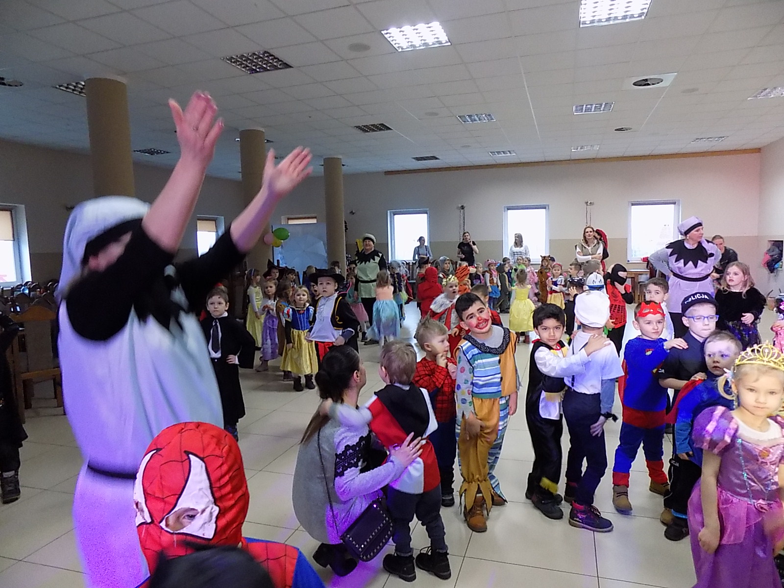 Opublikowano: 26-01-2018W dniu 26 stycznia 2018r. w naszym przedszkolu odbył się Bal Karnawałowy. Tego dnia już od rana w przedszkolu pojawiały się kolorowe postacie. Dzieci przebrane były za bohaterów znanych bajek, w salach przedszkolnych można było spotkać: wróżki, królewny, delikatne motylki, rycerzy, piratów, policjantów, Spider- Mna, Batmana, Zorro.....nie sposób zliczyć i wymienić tych wszystkich postaci. Rozpoznać dzieci było bardzo trudno. Dodatkową atrakcją w tym dniu był przejazd autokarem na bal, który odbył się na sali Ochotniczej Straży Pozarnej w Łeknie. W pierwsze kolejności dzieci miały możliwość pozowania do zdjęcia grupowego oraz zdjęć indywidualnych. Na tą wujątkową okazję zaprosiliśmy do prowadzenia balu wodzireja, który zachęcał wszystkich do tańca przygotowana muzyką. Dzieci świetnie się bawiły uczestnicząc wspólnie ze swoimi paniami w zabawach. Na sali podczas pląsów robiło się kolorowo, wszyscy bawili się wesoło, uśmiech nie znikał z twarzy mimo chwilowego zmęczenia. Po kilku chwilach wypoczynku przy słodkim poczęstunku i pysznym soczku muzyka znowu porwała wszystkich do tańca w rytm samby, walczyka, Kaczuch. Kiedy czas zabawy dobiegł końca dzieci z żalem opuszczały salę balową. Wspólna zabawa przyniosła wiele radości naszym wychowankom i umożliwiła spędzić czas w miłej atmosferze.