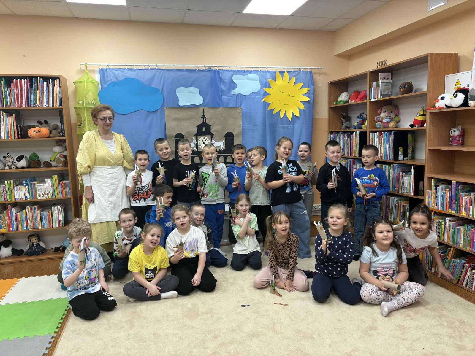 Opublikowano: 09-02-2026W Bibliotece Powiatowej odbyły się zajęcia dla przedszkolaków z Grupy Małych Podróżników poświęcone poznańskim koziołkom. Spotkanie rozpoczęło się od wspólnego wysłuchania legendy o koziołkach z poznańskiego ratusza. Dzieci z dużym zainteresowaniem słuchały opowieści, a następnie brały udział w rozmowie na temat jej treści, bohaterów oraz tradycji związanych z miastem Poznań.