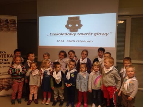 Opublikowano: 18-04-201915 kwietnia przedszkolaki wybrały się do biblioteki gdzie uczestniczył w zajęciach zorganizowanych z okazji Dnia Czekolady. Podczas prezentacji multimedialnej dzieci wzbogaciły swoją wiedzę na temat pochodzenia czekolady, jej właściwości oraz długiego procesu jej powstawania. Temat czekolady nie jest obojętny dla autorów książek. Pani bibliotekarka pokazała ich bardzo dużo i zachęciła do wypożyczenia.