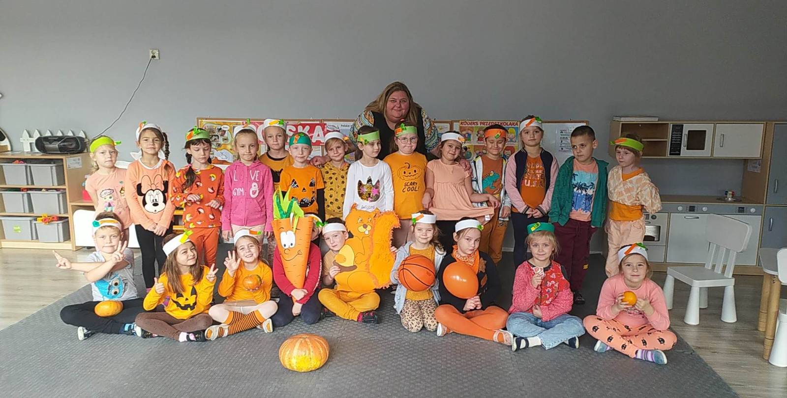 Opublikowano: 09-11-202209.11.22r jesiennym kolorem, który dominował w grupie Małych Przyrodników był kolor pomarańczowy. W tym dniu pojawiły się same pomarańczowe przedszkolaki. Z tej okazji nie mogło zabraknąć pomarańczowych dyń, marchewki, pomarańczy i mandarynek.