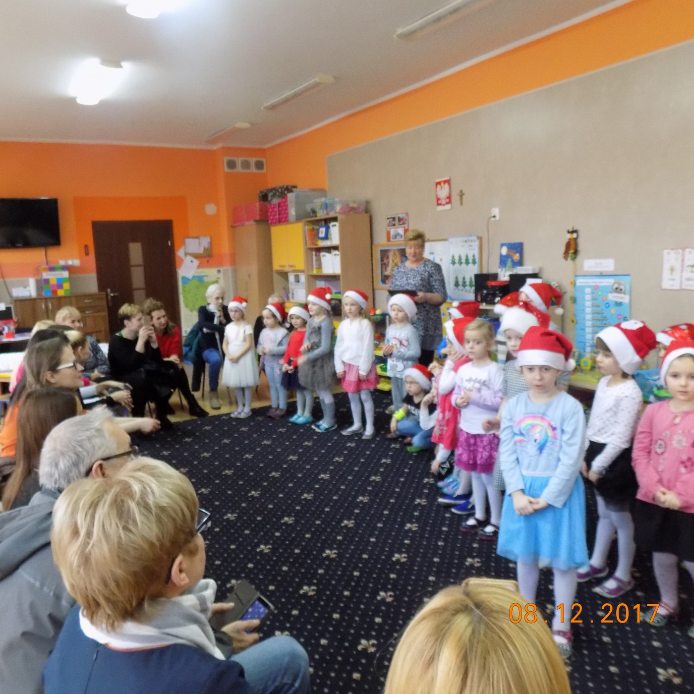 Czas przygotowań do Świąt Bożego Narodzenia jest niezwykły i niepowtarzalny...Warto go spędzić w miłej atmosferze w gronie najbliższych, dlatego grupa Małych Pdróżników zaprosiła swoich rodziców na wspólne kolędowanie. Dzieci poznały tradycje świąteczne, recytowały wiersze i wspólnie spiewały kolędy i piosenki świateczne. Dziękujemy rodzicom za zaangażowanie w przygotowaniu słodkiego oraz owocowego poczęstunku. Było bardzo radośnie i nastrojowo.
