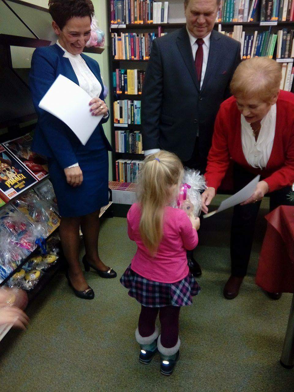 Opublikowano: 07-12-2017Dnia 7 grudnia o godzinie 17.00 w czytelni Powiatowej Biblioteki Publicznej odbyło się wręczenie nagród w Powiatowym Konkursie na "Świąteczną Bombkę". Nasz przedszkolak z najmłodszej grupy Krasnoludków Lenka Andraszewska otrzymała nagrodę w postaci lalki oraz dyplomu, którą wręczył starosta Tomasz Kranc. SERDECZNIE GRATULUJEMYJEMY :)