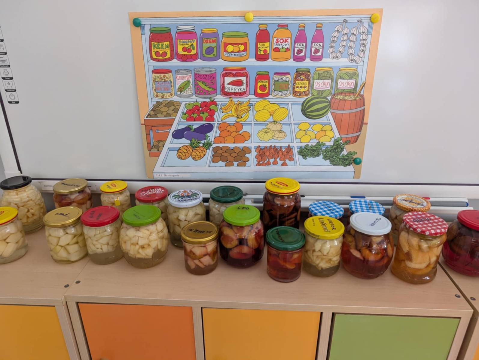 Opublikowano: 24-09-2025Jesień to czas kiedy robimy przetwory z owoców przygotowując zapasy na zimę. 24.09.2025r. dzieci z grupy Małych Odkrywców uczyły się jak ważne jest spożywanie owoców, a zwłaszcza tych z domowych zapasów. Po rozmowie na temat robienia różnego rodzaju jesiennych przetworów – dzieci rozpoczęły przygotowania do zimy i postanowiły zrobić kompot ze śliwek, jabłek oraz gruszek.. Na początek starannie umyły ręce i w słoiczkach układały pokrojone przez siebie owoce, zasypywały odrobiną cukru i zalewały wodą. Na koniec dzieci poprosiły panią kucharkę o zagotowanie szczelnie zakręconych słoików. Po ugotowaniu kompoty trafiły do kącika przyrody, by móc zimą cieszyć się smakiem lata zamkniętego w słoiku. Przygotowanie kompotów okazało się świetną zabawą, przy której dzieci nabyły nowych wiadomości oraz umiejętności.