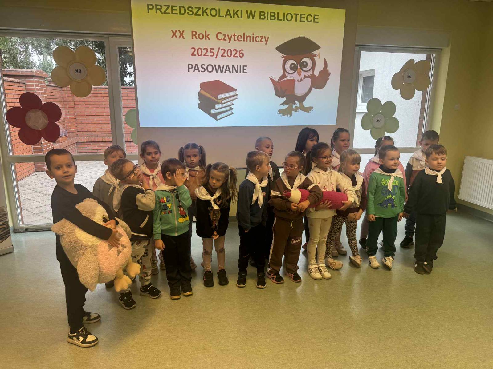 Opublikowano: 30-09-202530 września grupa Małych Przyrodników udała się do Miejskiej Biblioteki Publicznej. Celem spotkania w bibliotece było poznanie tej instytucji. Dzieci dowiedziały się jaką funkcje pełni ta placówka, jak należy wypożyczać książki i dbać o nie. Następnie złożyły przysięgę czytelnika po czym nastąpiło uroczyste Pasowanie na Czytelnika Biblioteki i wręczenie notatników. Na koniec pani bibliotekarka oprowadziła przedszkolaki po pomieszczeniach biblioteki pokazując ogromne księgozbiory. Było to pierwsze spotkanie z cyklu zajęć edukacyjnych rozwijających u dzieci zainteresowania czytelnicze.