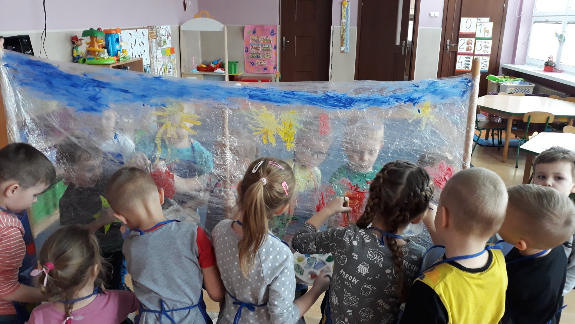 Opublikowano: 22-03-2019Dzisiaj 22 marca grupa Kubusiów oddała się całkowicie twórczości plastycznej. Podczas słuchania utworu Piotra Czajkowskiego,, Walc kwiatów’’ dzieci malowały farbami na folii śniadaniowej. Ta technika plastyczna dostarczyła dzieciom wielu bodźców: dotykowych, słuchowych i wzrokowych. Była także okazją do plastycznego wyżycia się, przeżywania sztuki oraz ćwiczeń manualnych. Kubusie z uśmiechem na twarzy i pełnym skupieniu tworzyły pejzaż wiosenny.