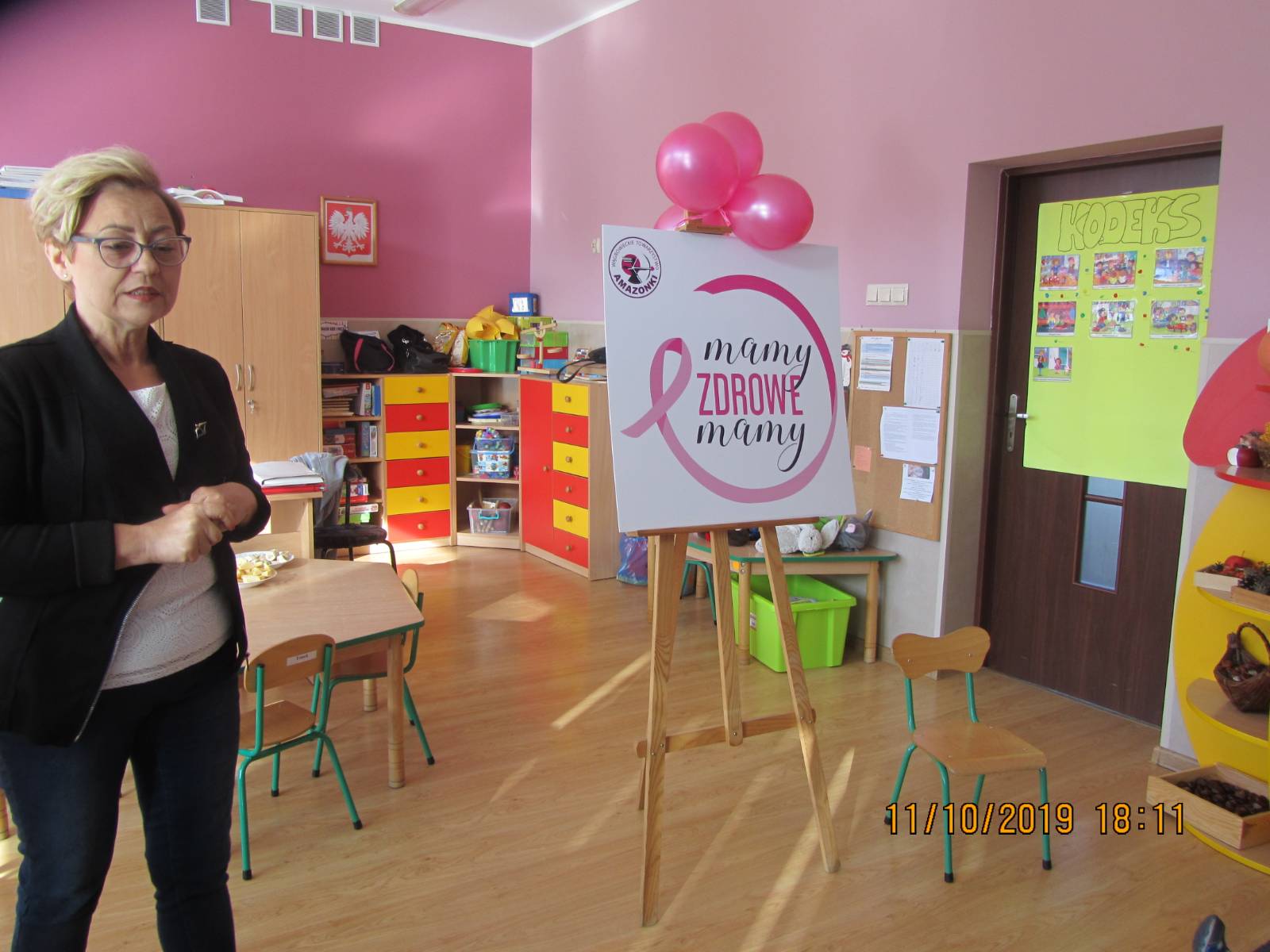 Opublikowano: 11-10-201911 października w naszym przedszkolu gościły panie z Wągrowieckiego Klubu Amazonek. Spotkanie rozpoczęło się pogadanką pani Hani na temat dbania o zdrowie a w szczególności badań kontrolnych przez osoby dorosłe. Pani Hania ozdobiła również świeżo zasadzoną choinkę różową kokardką. Po obiedzie w holu przedszkola panie,,Amazonki'' wręczały dzieciom różowe baloniki a mamom ulotki dotyczące walki z rakiem piersi. Bardzo ważna jest profilaktyka raka piersi, polegająca przede wszystkim na regularnym samobadaniu piersi, badaniom USG oraz mammografii.