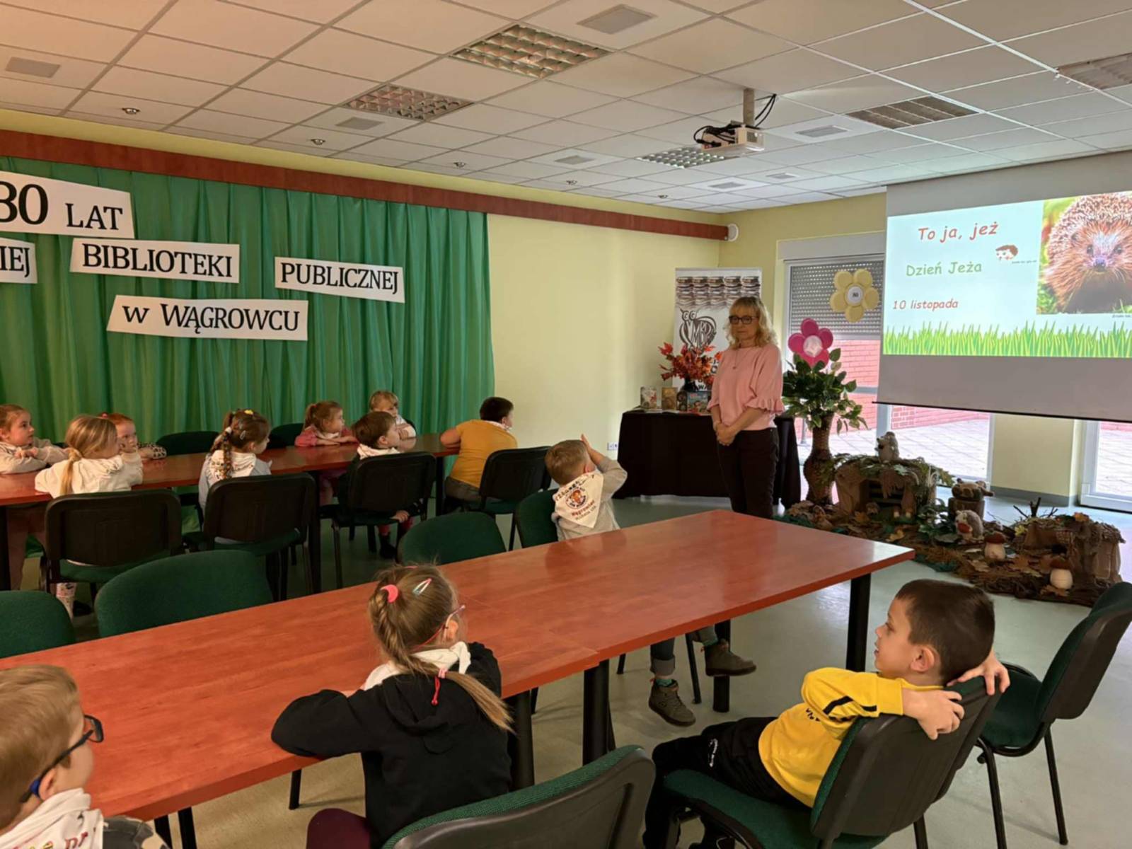 Opublikowano: 19-11-2025Dnia 19 listopada grupa małych przyrodników uczestniczyła w cyklicznym spotkaniu w Powiatowej Bibliotece Publicznej w Wągrowcu. Spotkanie dotyczyło „Dnia Jeża” dzieci poznały wiele ciekawostek dotyczących tych mały zwierząt, następnie zdobyły kolejną literę do swoich broszurek. Bardzo dziękujemy za bardzo miłe i ciekawe spotkanie
