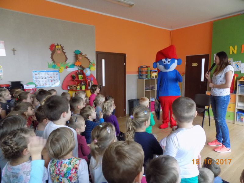 Opublikowano: 18-10-2017DZISIAJ DO NASZEGO PRZEDSZKOLA Z WIZYTĄ PRZYJECHAŁ PAPA SMERF. PO KRÓTKIM SMERFOWYM GUIZIE ZE ZNAJOMOŚCI LITEREK PRZEDSZKOLAKI OTRZYMAŁY KOLOROWANKI PAPY SMERFA, A NA ZAKOŃCZENIE KAŻDA GRUPA MIAŁA SESJĘ ZDJĘCIOWĄ. BYŁO BARDZO SMERFASTYCZNIE!