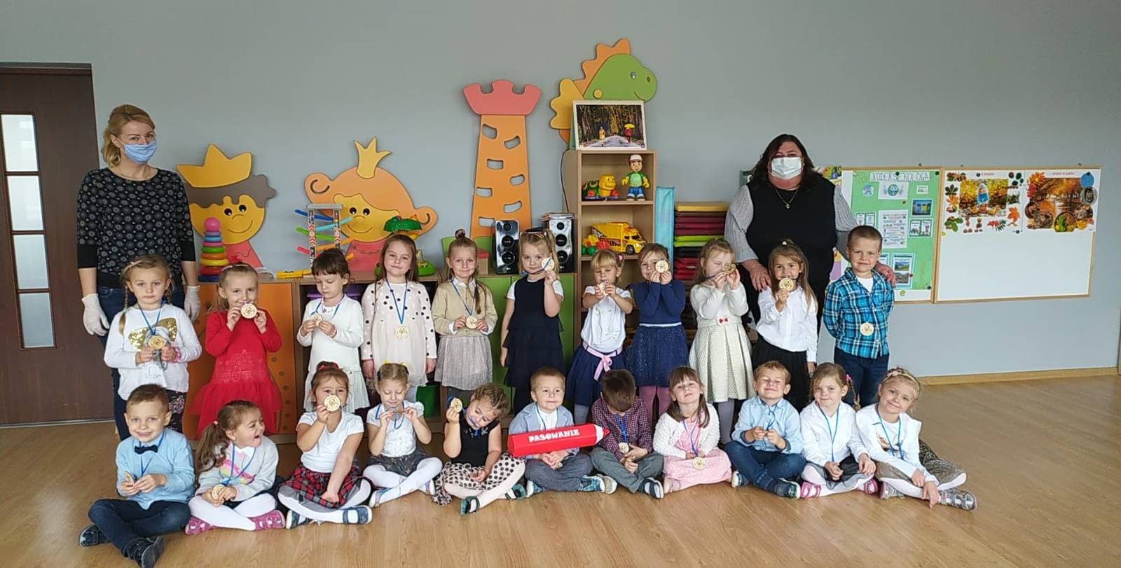 Opublikowano: 27-10-2020Dzień 27 października 2020 r. pozostanie na długo w pamięci dzieci z grupy ,,Kubusiów’’. Właśnie tego dnia odbyła się ważna przedszkolna uroczystość “Pasowanie na Przedszkolaka - Kubusia”. Uroczystość rozpoczęła się od przedstawienia krótkiej części artystycznej, w której dzieci zaprezentowały swoje umiejętności recytatorskie i wokalne. Nie zabrakło również uroczystego przyrzeczenia na dzielnego Przedszkolaka. Po części artystycznej, pani dyrektor dokonała uroczystego pasowania na przedszkolaka dzieci kładąc na ramieniu każdego dziecka dużą kredkę. Na twarzach przedszkolaków widać było powagę i dumę, że w tym dniu, oni są najważniejsi. Na pamiątkę tego wydarzenia każde dziecko otrzymało medal. To miłe spotkanie zakończyło się wspólną fotografią i słodkim poczęstunkiem. Przedszkolakom ,,Kubusiom’’ życzymy wielu sukcesów, nowych przyjaźni i samych radosnych chwil spędzonych w przedszkolu!
