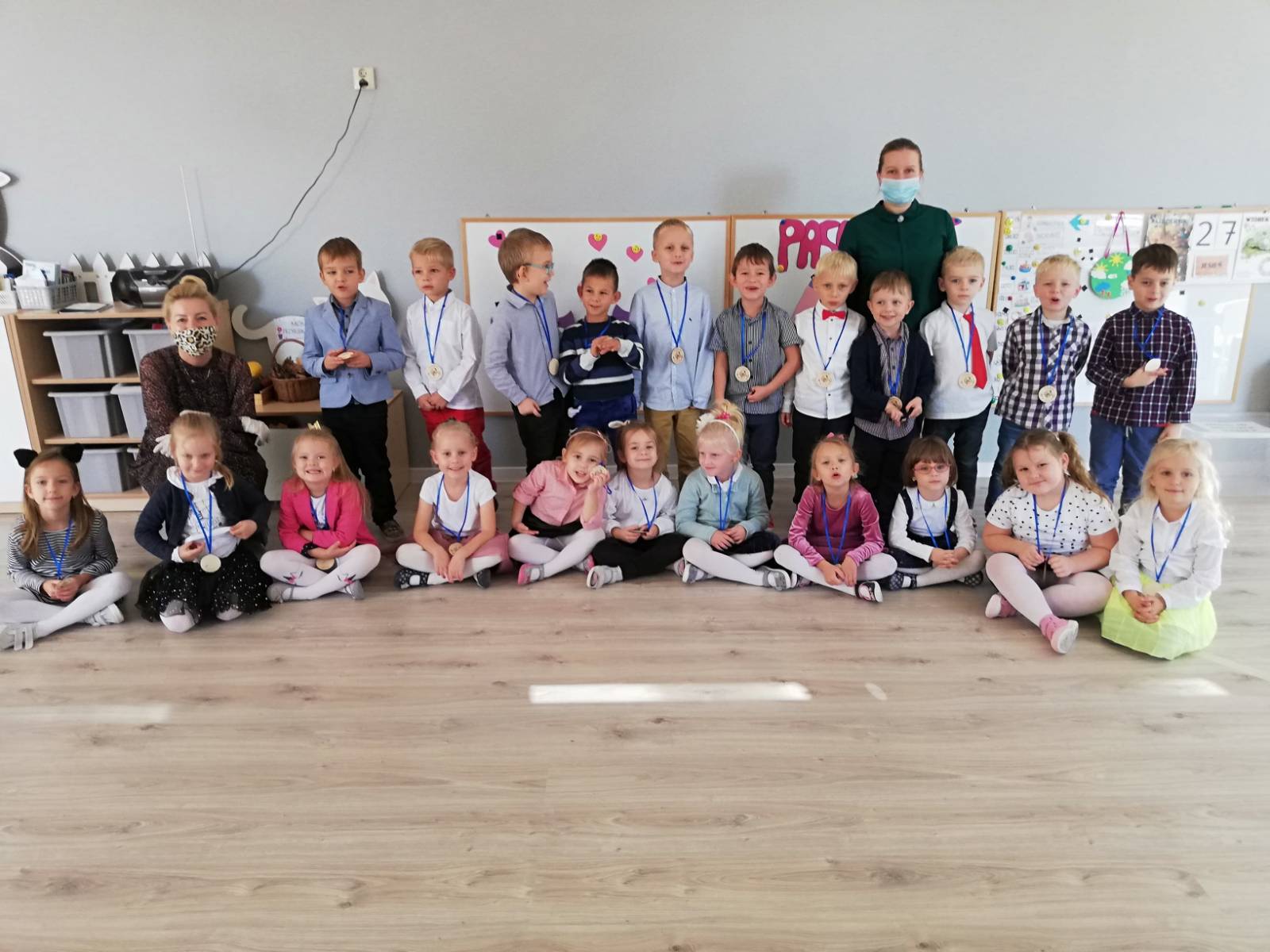 Opublikowano: 28-10-202028.10.2020r w grupie,, Małych Odkrywców ‘’odbyła się uroczystość pasowania. Dzieci zaprezentowały krótki program artystyczny w czasie którego zaprezentowały swoje umiejętności wokalne i taneczne. Po części oficjalnej Pani Dyrektor pasowała dzieci magiczną kredką i wręczała pamiątkowe medale.