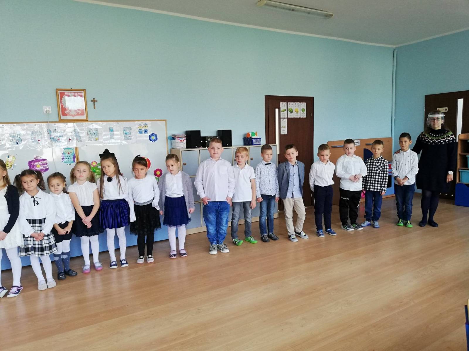 Opublikowano: 29-10-202029 października 2020 r to ważny dzień w życiu grupy ,,Małych Podróżników’’. To dzień Pasowania na Przedszkolaka Starszaka. Dzieci były ogromnie przejęte a szczególnie nowi członkowie grupy; Gabrysia I Marcel. Pięknie przedstawiły wcześniej przygotowany program artystyczny. Zaśpiewały piosenkę ,,Zuch Przedszkolak’’, zaprezentowały się w tańcach ,, Ręce prosto ’’i ,, Kozierajka ’’ oraz złożyły uroczyste ślubowanie. Każdy przedszkolak otrzymał pamiątkowy medal. Uroczystość zakończyła się słodkim poczęstunkiem.