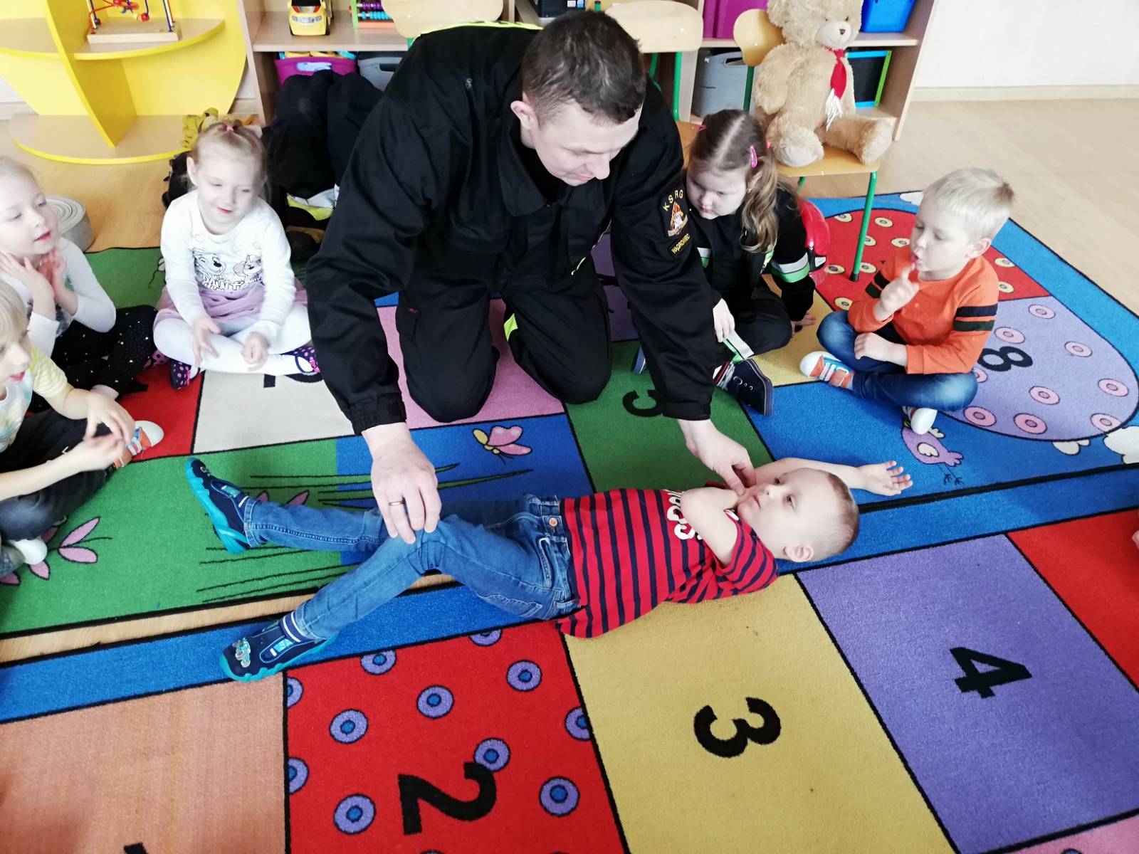 Opublikowano: 26-02-202025.02.2020 roku grupa Kubusiów gościła tatę Oliwki – pana Tomka, który przybliżył dzieciom zawód strażaka. Przedszkolaki mogły obejrzeć strój strażacki oraz niezbędne w tym zawodzie narzędzia. Wysłuchały również informacji o trudnej, odpowiedzialnej i niebezpiecznej pracy strażaka oraz akcjach ratowniczo-gaśniczych. Dzieci dowiedziały się także, w jakich sytuacjach wzywa się Straż Pożarną oraz przypomniały sobie numery alarmowe. Pan Tomek przeprowadził również krótki kurs I pomocy przedmedycznej. Spotkanie uświadomiło dzieciom jak trudna i odpowiedzialna, a zarazem ciekawa jest praca strażaka. Bardzo dziękujemy panu Tomkowi za poświęcony czas i przekazaną wiedzę.