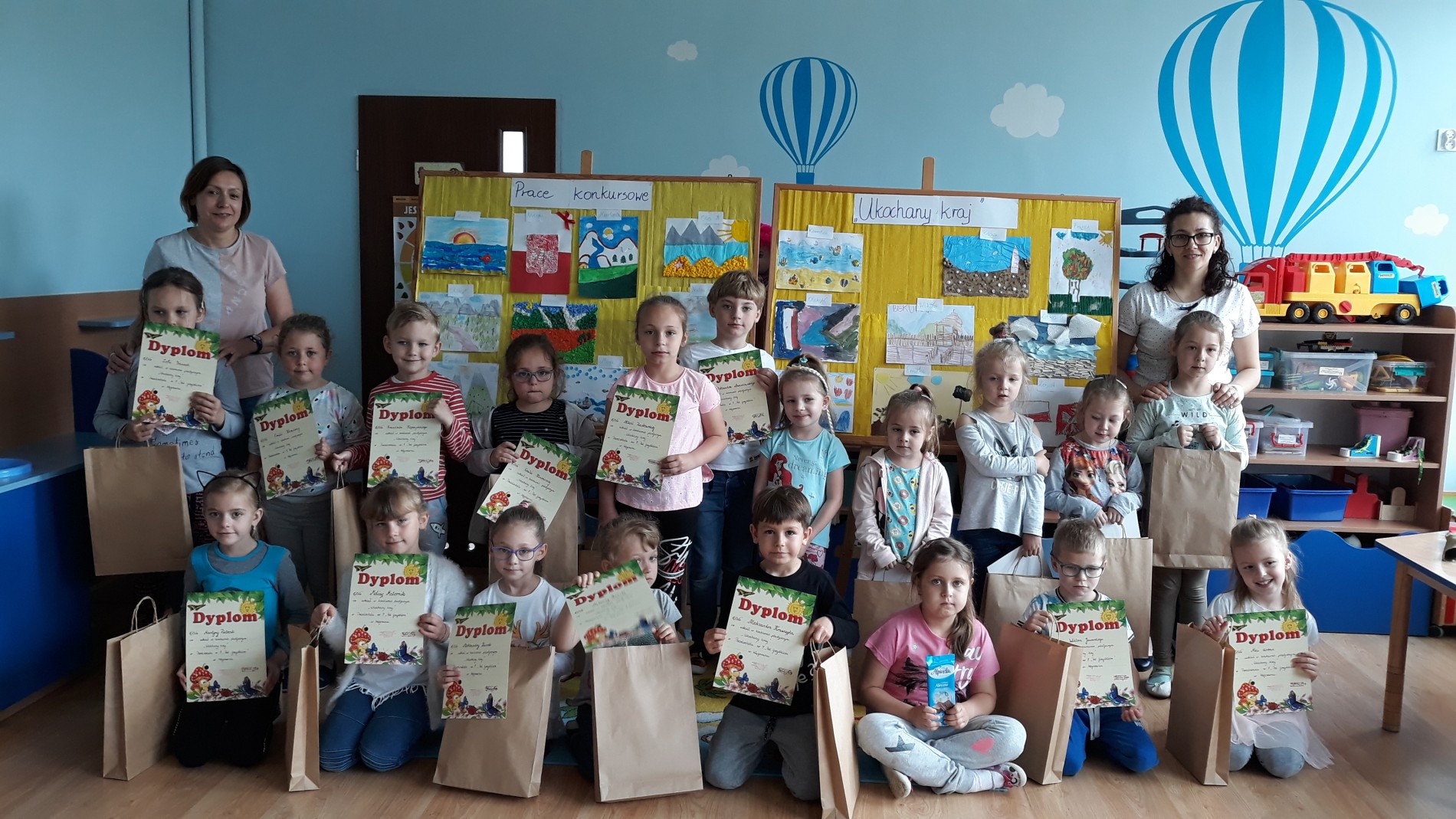 Dnia 23 maja odbyło się rozstrzygnięcie konkursu plastycznego ,,Ukochany kraj’’. Przyniesione przez dzieci prace były prześliczne i wykonane za pomocą różnych technik. W pracach przeważał krajobraz morski i górski, w których nie zabrakło nawet prawdziwego piasku i muszelek. Wszystkim serdecznie gratulujemy i zachęcamy do udziału w kolejnych konkursach.