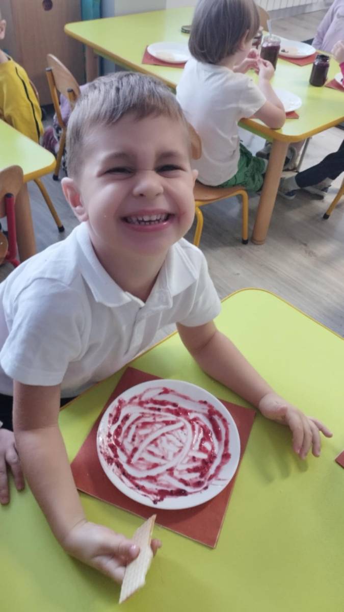 Opublikowano: 07-10-2025W poniedziałek dzieci z grupy Pracowitych Pszczółek poznawały smaki lata zamknięte w słoiczkach. Przedszkolaki poznały proces przygotowania słodkich weków oraz rozpoznawały smaki różnorodnych konfitur, powideł i dżemów z zamkniętymi oczami. Serdecznie dziękujemy Rodzicom Pszczółek za dostarczone pyszności.