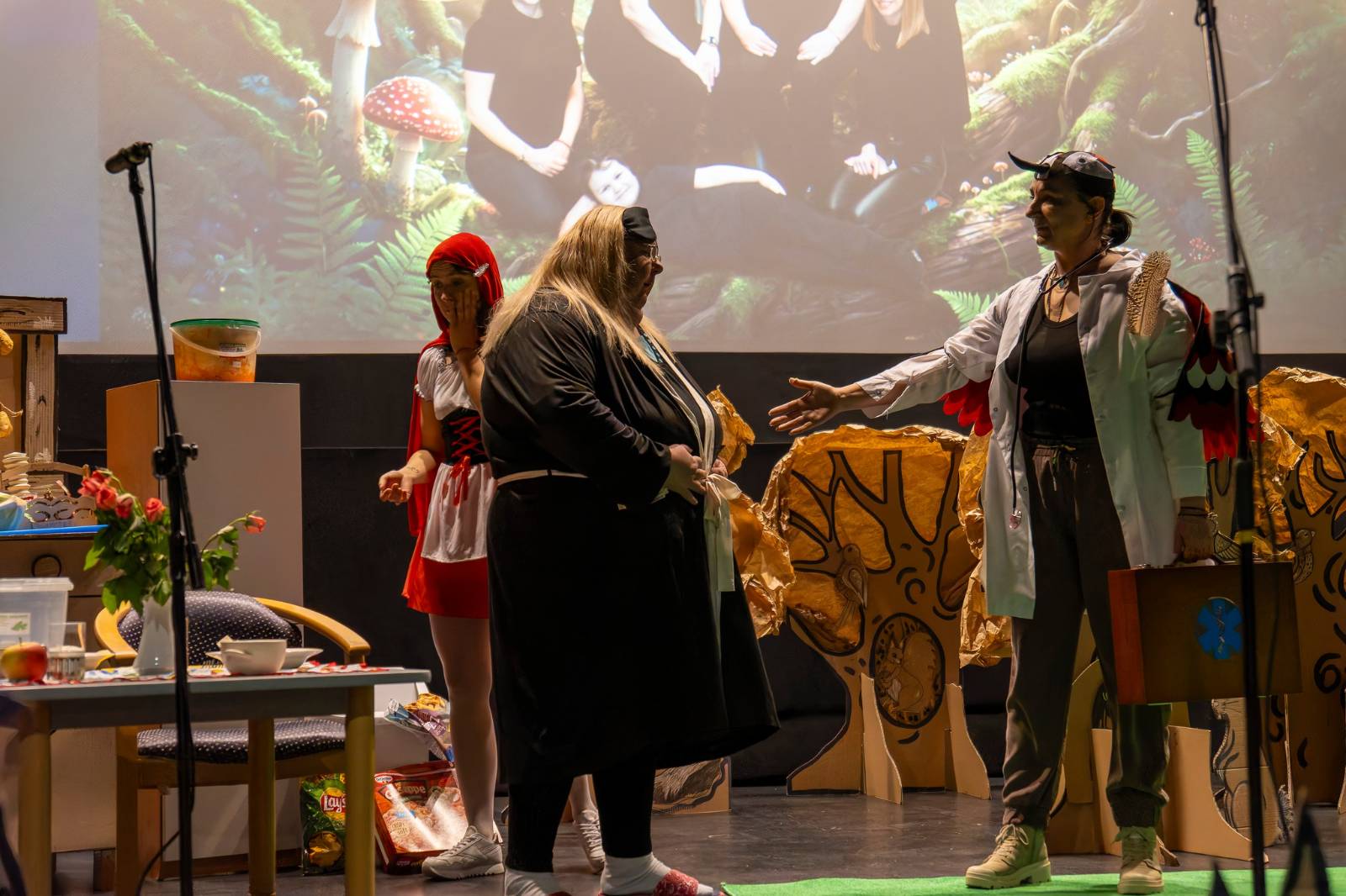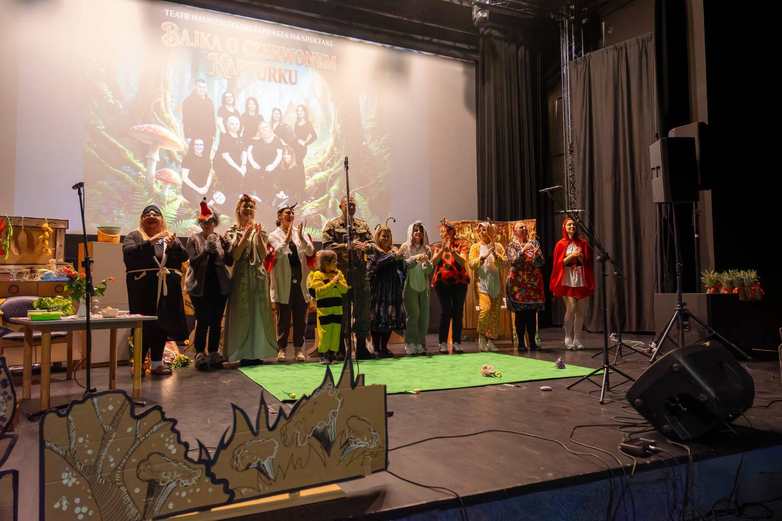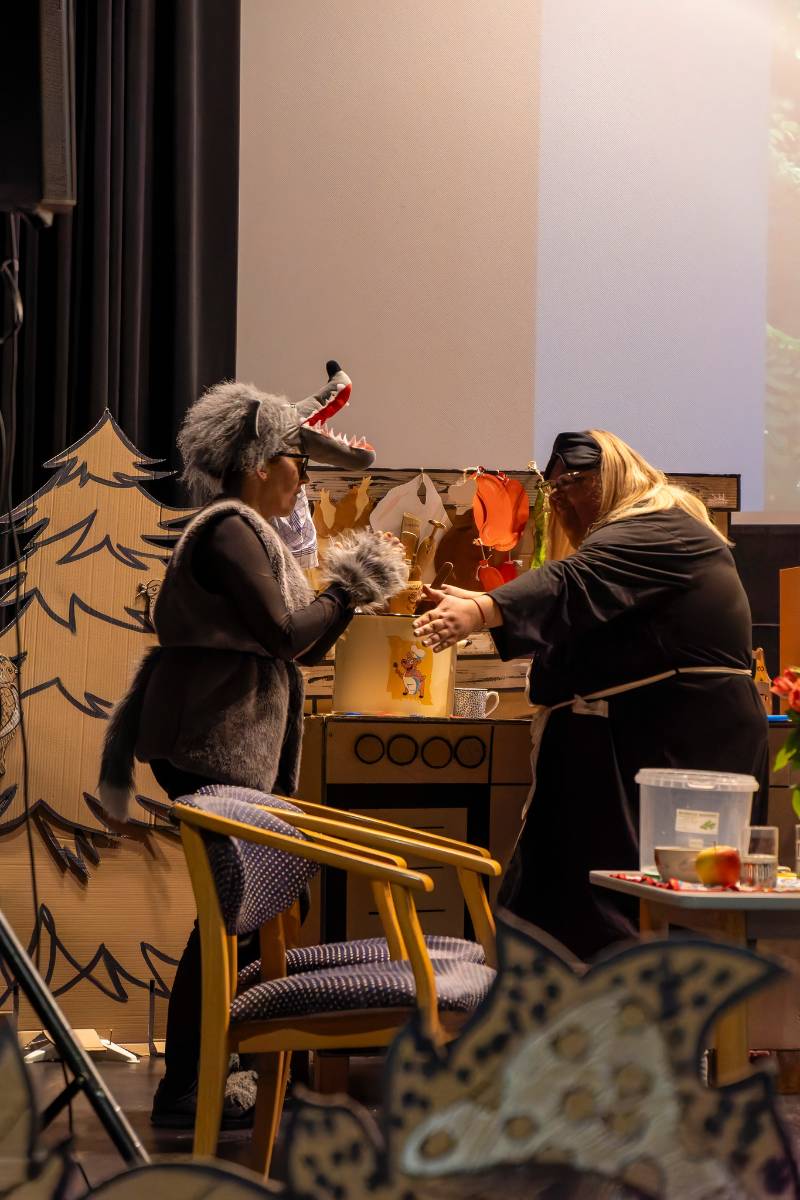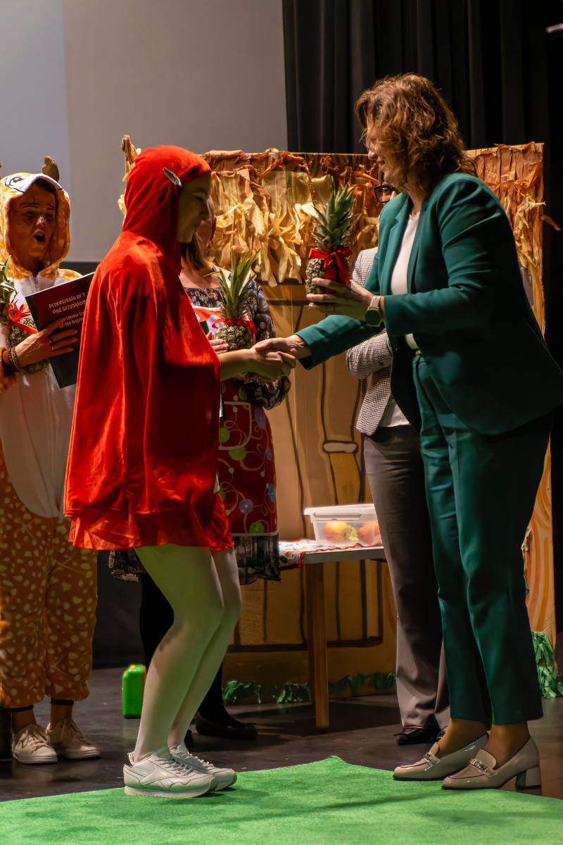 Opublikowano: 09-03-20269 marca 2026 roku na scenie Miejskiego Domu Kultury w Wągrowcu odbyło się przedstawienie ,,Baka o Czerwonym Kapturku’’ w wykonaniu Teatru Nauczycielskiego ,,Pod Grzybkiem’’ z Przedszkola nr 7 w Wągrowcu. Spektakl przedstawiał perypetie łapczywej babci, która w komitywie ze sprytnym wilkiem obrała złą dietę. Złe nawyki żywieniowe zrujnowały zdrowie naszych bohaterów. Z pomocą przybywa Czerwony Kapturek, który wzywa doktora. Bajka jest przesłaniem prozdrowotnym dla wszystkich, ukazuje skutki złej diety i propaguje zdrowy styl życia. Przedstawienie zawierało ważne cele wychowawcze i edukacyjne, takie jak kształtowanie zdrowych nawyków, budowanie świadomości zdrowotnej oraz rozwijanie odpowiedzialności za własne zdrowie.