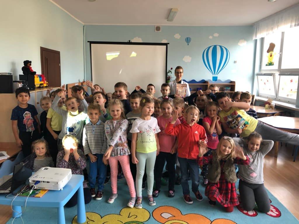 Opublikowano: 01-12-2019Starszaki gościły p. Sylwię Styczyńską – dietetyk z Naturhouse w Wągrowcu. Pani Sylwia zapoznała dzieci z piramidą żywienia oraz zachęcała dzieci do spożywania posiłków bogatych w warzywa i owoce. Nasz ekspert proponował również, by aktywnie spędzać czas wolny na świeżym powietrzu. Przedszkolaki na zakończenie spotkania otrzymały kolorowanki na temat zasad zdrowego odżywiania się i aktywności fizycznej.