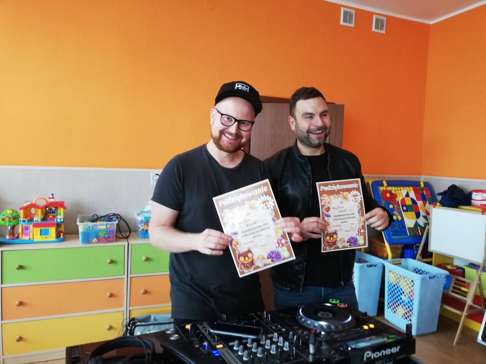 Opublikowano: 01-10-20191.10.2019 roku z okazji przypadającego w tym dniu Światowego Dnia Muzyki gościliśmy w przedszkolu wokalistę i tancerza pana Jakuba Arendta oraz prezentera wągrowieckiego radia pana Jakuba Kosmatkę. Panowie zaprezentowali swoje umiejętności wokalne i muzyczne. Dzieci dowiedziały się kim jest DJ i jaki sprzęt jest mu potrzebny w jego pracy. Następnie DJ pokazywał w jaki sposób miksuje się muzykę. Dzieciom bardzo spodobał się rap i taniec breakdance w wykonaniu pana Jakuba Arendta. Dziękujemy za spotkanie!