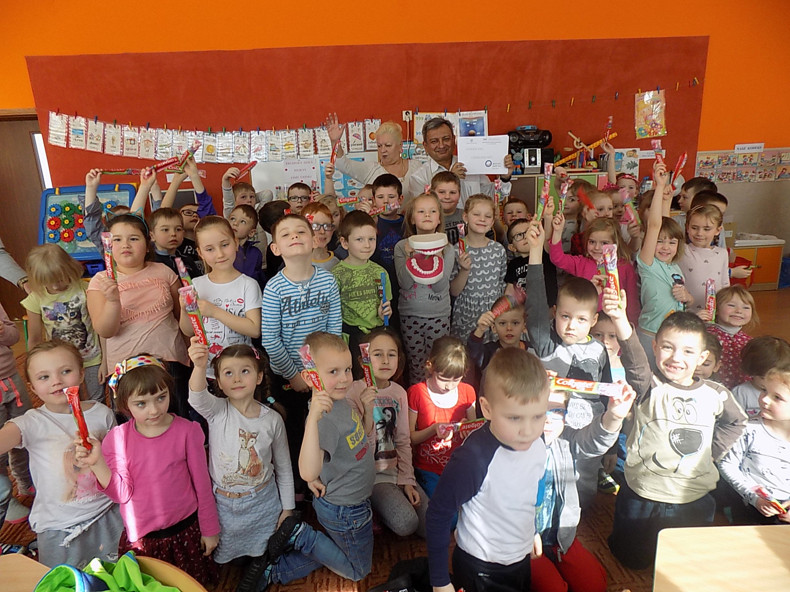 Opublikowano: 20-03-201820 marca obchodzimy Światowy Dzień Zdrowia Jamy Ustnej, z tej okazji zaprosiliśmy do przedszkola stomatologa- pana Aruna Goela. W bardzo przystępnej i ciekawej formie tłumaczył dzieciom, jak ważna jest higiena jamy ustnej, do czego doprowadza jej brak i w jaki sposób można pomóc chorym ząbkom. Za pomocą dużej szczotki i modelu szczęki przedszkolaki dowiedziały się, jak poprawnie szczotkować zęby. Następnie dzieci obejrzały projekcję filmu edukacyjnego pod tytułem,, W obronie Zębolandii przed napadem Czarodzieja Zębopsuja'', dzięki któremu dowiedziały się , co to jest próchnica i dlaczego psują się zęby oraz jak prawidłowo należy je czyścić. Pan stomatolog zachęcał jednocześnie dzieci do wizyt w gabinecie stomatologicznym, pomagając im tym samym w przełamaniu lęku przed kontaktem z dentystą. Na zakończenie spotkania pan stomatolog podarował dzieciom szczoteczki do mycia zębów.Mamy nadzieję, że to spotkanie wpłynie na kształtowanie postawy dzieci wobec własnego zdrowia i nawyków higienicznych.