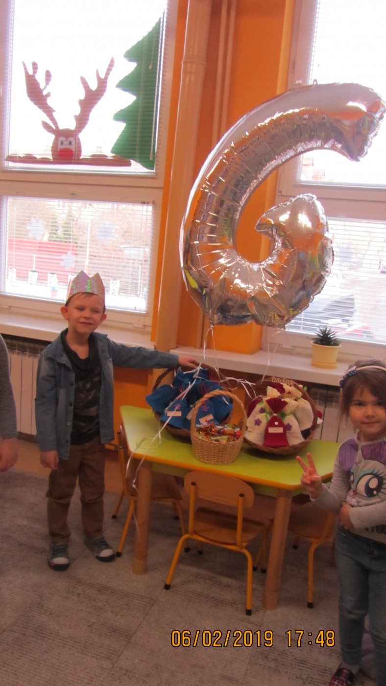 6 lutego w grupie Biedroneczek było bardzo wesoło. Kubuś B. obchodził swoje szóste urodzinki. Mama chłopca bardzo zaangażowała się i przygotowała piękne dzwoneczki dla każdego dziecka, które były wyrazem podziękowania za złożone życzenia . Kubuś cieszył się bardzo, że spędził urodzinki w gronie przyjaciół.