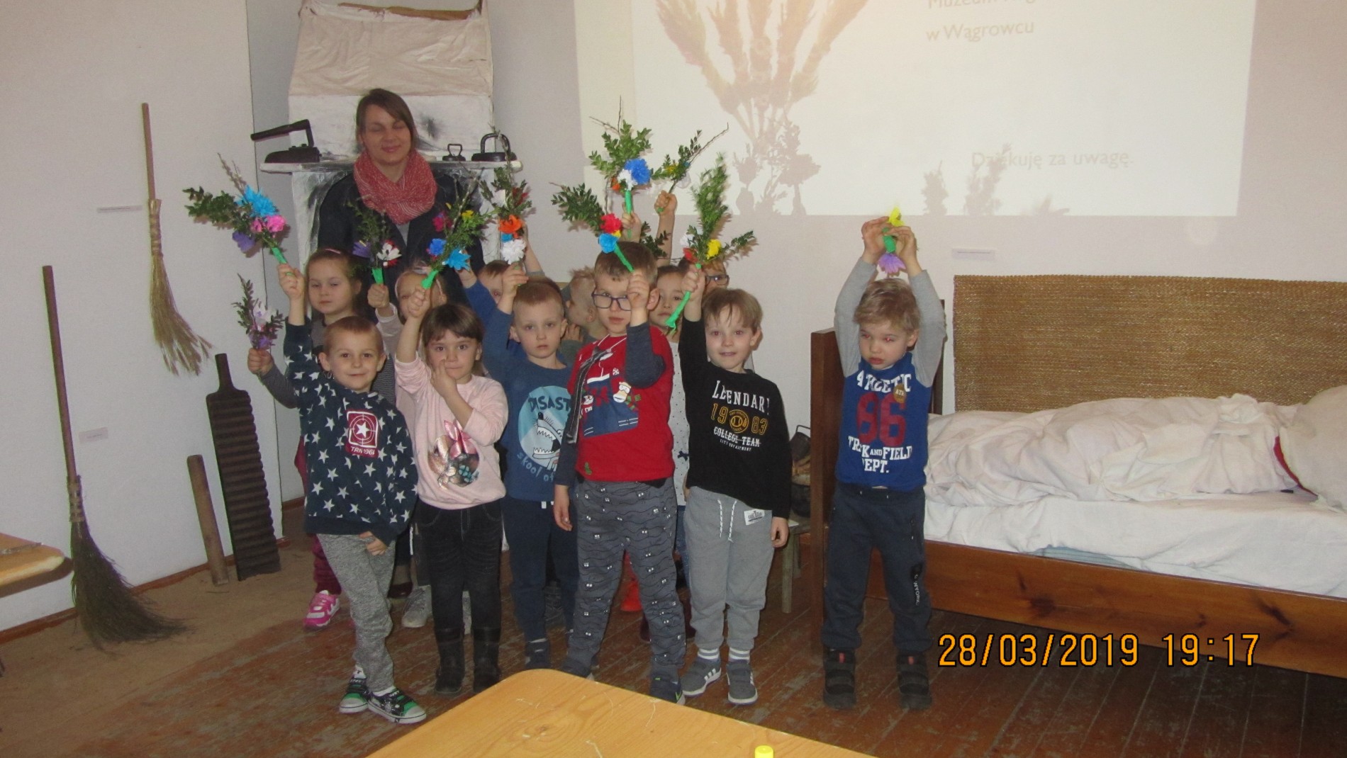 Opublikowano: 28-03-2019Po raz kolejny Biedroneczki wybrały się do muzeum. Pani Wiesia przygotowała pokaz multimedialny dotyczący tradycji wielkanocnych. Na zakończenie wszyscy wykonali palmy, które ozdobią domy w Niedzielę Palmową. Dziękujemy pani Wiesi i życzymy Wesołych Świąt!