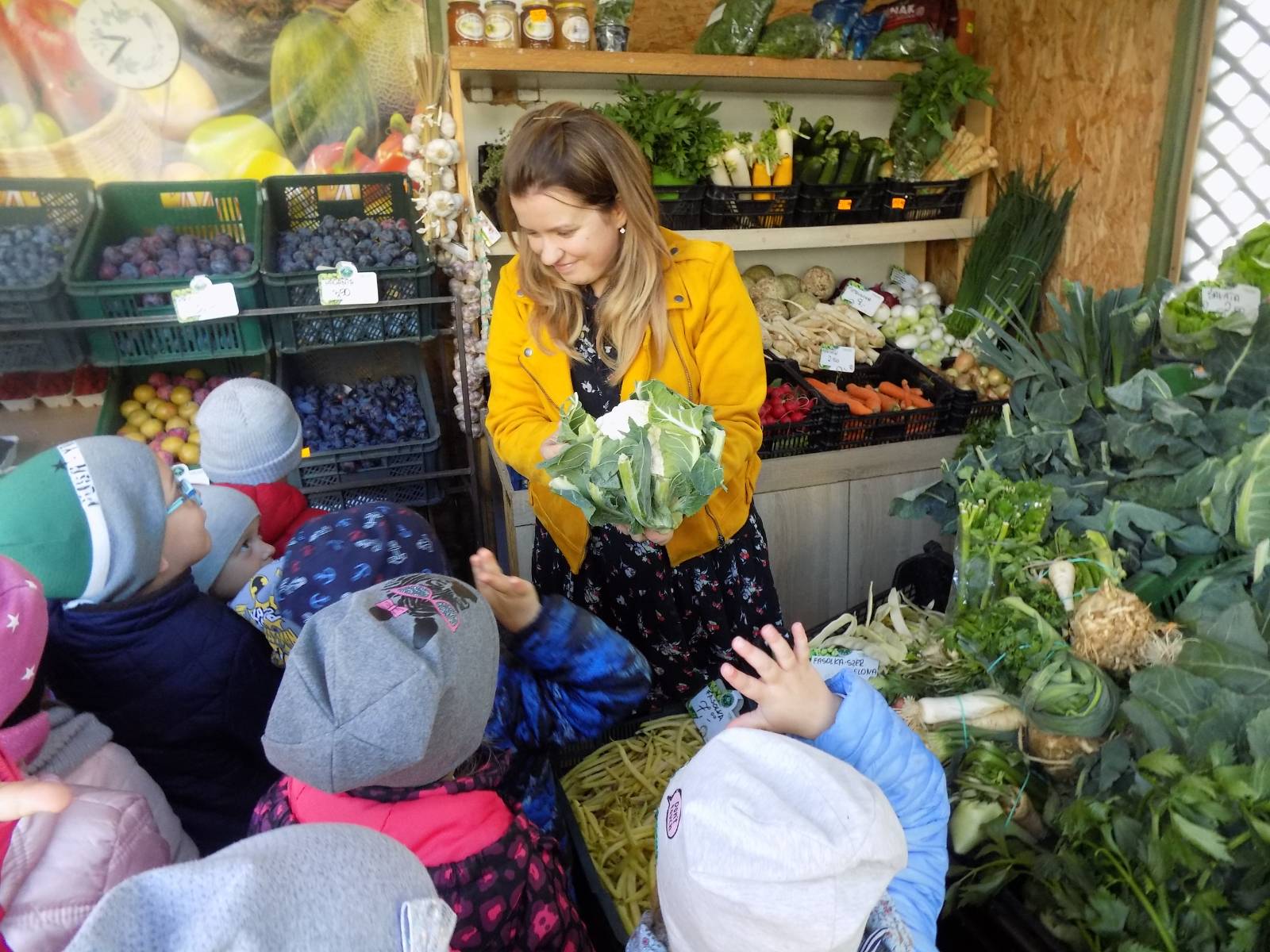Opublikowano: 03-10-2019Kubusie wybrały się na stragan owocowo- warzywny. Dzieci oglądały i nazywały różne warzywa i owoce zwracając uwagę na ich kolory, kształt i miejsce gdzie rosną. Każdy przedszkolak wskazywał swój ulubiony owoc lub warzywo. Ponadto Kubusie dowiedziały się, które warzywo można jeść na surowo, a które dopiero po ugotowaniu. Dzieci poznały też zawód sprzedawcy oraz akcesoria niezbędne w jego pracy.