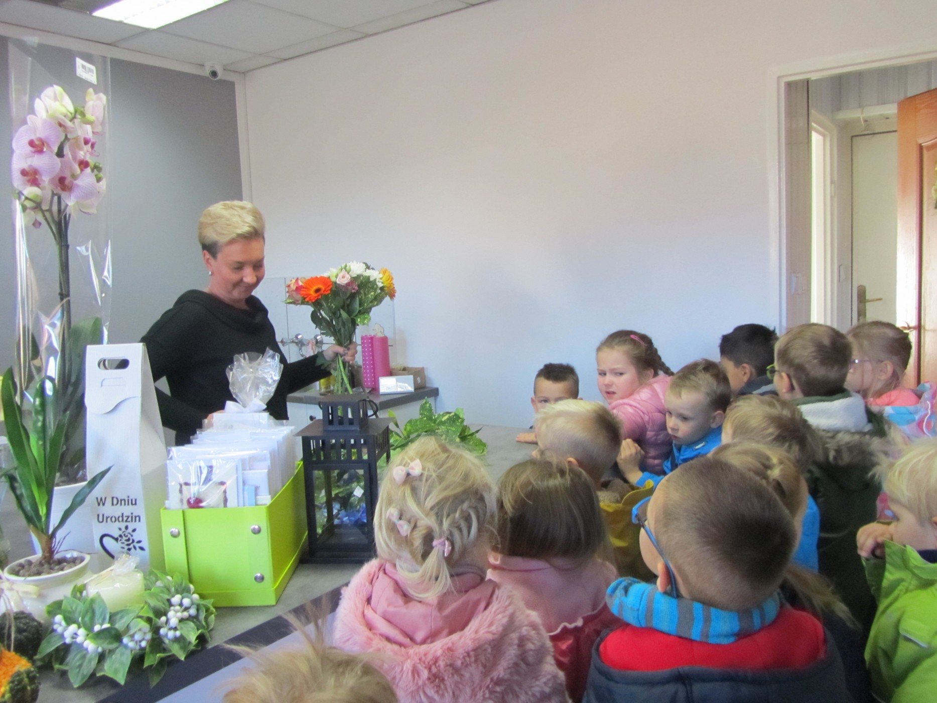 Opublikowano: 25-10-2018W dniu 24 października Biedroneczki udały się do Kwiaciarni FOR YOU poznać zawód kwiaciarki. Z wielkim zaciekawieniem dzieci przyglądały się jak powstają piękne bukiety i stroiki świąteczne. Dowiedziały się również jak nazywają się różne gatunki kwiatów. Na zakończenie panie poczęstowały dzieci słodyczami oraz obdarowały ozdobnymi dyniami, aby ozdobić kącik przyrodniczy.