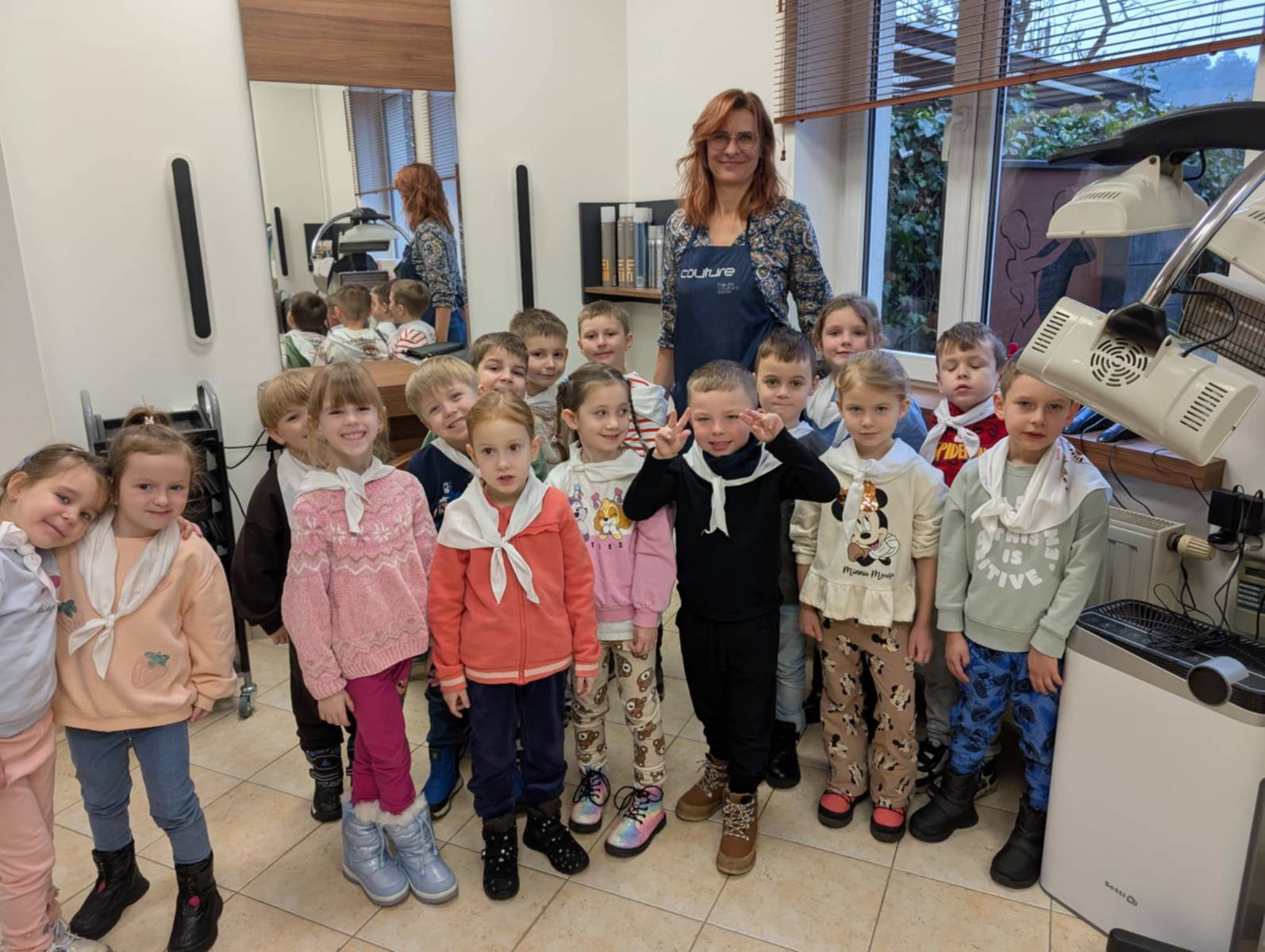 Opublikowano: 04-12-202504.12.2025r dzieci z grupy ,,Małych Odkrywców’’ , w ramach doradztwa zawodowego udały się na wycieczkę do salonu fryzjerskiego- ,,Wekwert Iwona’’. Przedszkolaki miały możliwość obejrzenia z bliska pracy fryzjerki: strzyżenia i modelowania włosów, a także mogły zapoznać się z wyposażeniem zakładu. Dzieci skorzystały również z mycia włosów – oczywiście „na niby”! Wycieczka do salonu fryzjerskiego sprawiła przedszkolakom radość i dostarczyła im wiele doświadczeń – co ważne – nie tylko dziewczynkom, ale również chłopcom. Nasza wycieczka była niezapomnianą, wspaniałą przygodą i jednocześnie ciekawą lekcją. Dziękujemy pani Iwonie za poświęcony czas oraz ciekawe spotkanie.