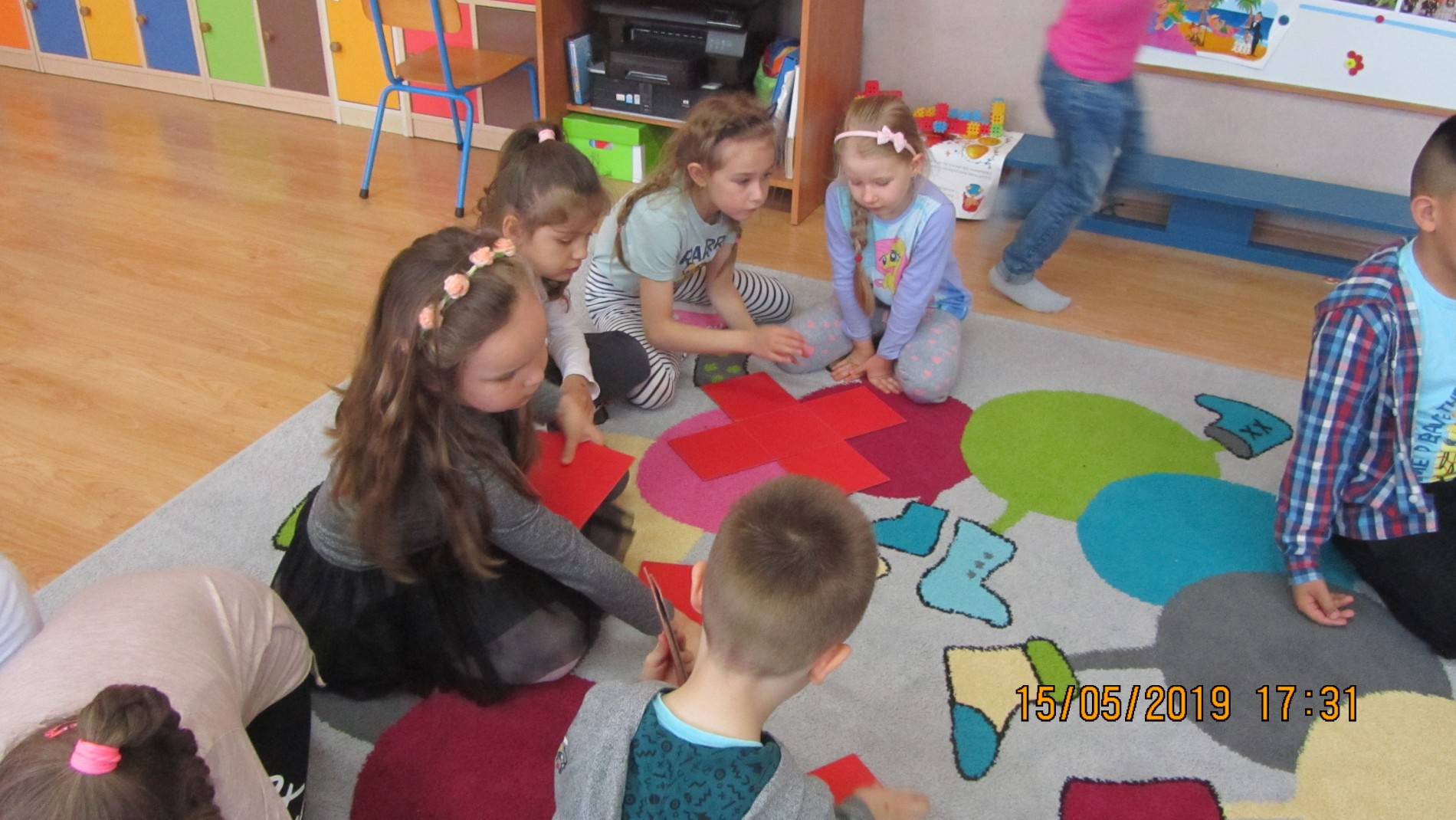Opublikowano: 15-05-201915.05.2019 roku dzieci z grupy: "Małych Odkrywców" i "Małych Przyrodników" odwiedziła pani M. Jankowska wraz z wolontariuszkami PCK w ramach programu "Super Wiewiórka". Podczas ciekawego spotkania dzieci poznały ideę działalności Polskiego Czerwonego Krzyża, która jest ściśle związana z pomocą osobom potrzebującym. Następnie dzieci układały z kwadratów wzór krzyża PCK oraz oglądały ilustrację przedstawiające pracę wolontariuszy w różnych krajach. Na zakończenie przedszkolaki zostały mianowane specjalną "szczoteczką" na członka "Klubu Super Wiewiórka" i dostały legitymację Klubu.