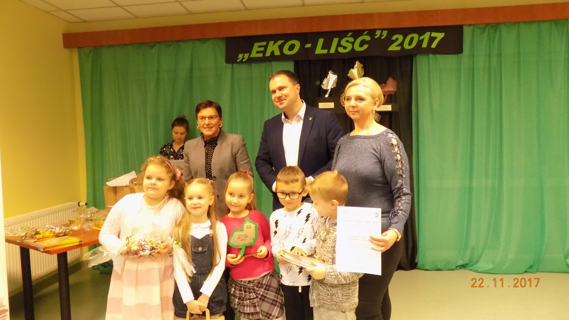 Nagrodzonym laureatom pan Burmistrz wręczył statuetkę Eko-liścia, dyplom oraz nagrody rzeczowe.