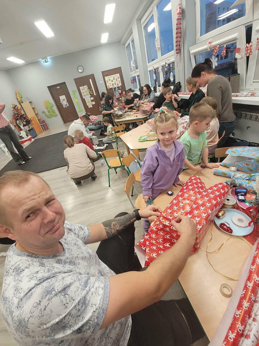 Opublikowano: 11-12-202511 grudnia, grupa „Kubusiów” uczestniczyła w zajęciach otwartych z Rodzicami pt. „Świąteczne spotkanie”. Na początku przedszkolaki przyjechały w rytm piosenki „Jadą w saniach dzieci…” i zaprosiły opiekunów do wspólnej zabawy. „Najmłodsi” łapali płatki śniegu, lepili bałwana, tworzyli reniferowe zaprzęgi oraz tańczyli do utworu „Jingle bells”. Na zakończenie dzieci wraz z Rodzicami trenowały umiejętność wiązania kokardy na prezencie. Dzięki owocnej współpracy udało się estetycznie zapakować upominek. Drodzy Rodzice, umiejętność wiązania wymaga koordynacji wzrokowo-ruchowej, kształtowania sprawności manualnej, a także koncentracji uwagi. Chwalmy przedszkolaki za małe osiągnięcia, ćwiczymy razem, a na pewno dzieci poczynią postępy.