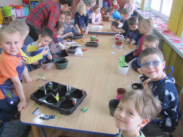 Opublikowano: 11-04-201811 kwietnia dzieci z grupy ,,Małych Odkrywców''przygotowały doniczki i pojemniki z ziemią oraz różne nasiona i cebule: marchewki,fasoli,pietruszki,koperek,szczypiorek, sałatę, rzeżuchę i wiele innych. Najpierw dzieci obejrzały i omówiły wygląd, kształt i kolor nasion, następnie zostały omówione etapy wzrostu roślin i co należy zrobić by rosły. Następnie dzieci przystapiły do wysiewu nasion do doniczek i pojemników.Doniczki z wysianymi nasionami zostały umieszczone w kąciku przyrody, który znajduje się w sali. Dzieci będą systematycznie podlewały roślinki i obserwowały ich wzrost.