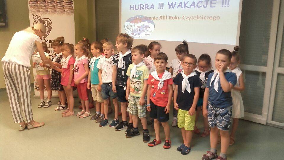 Opublikowano: 17-06-201917 czerwca grupa Małych Odkrywców i Małych Przyrodników uroczyście zakończyła XIII rok czytelniczy w Miejskiej Bibliotece Publicznej.