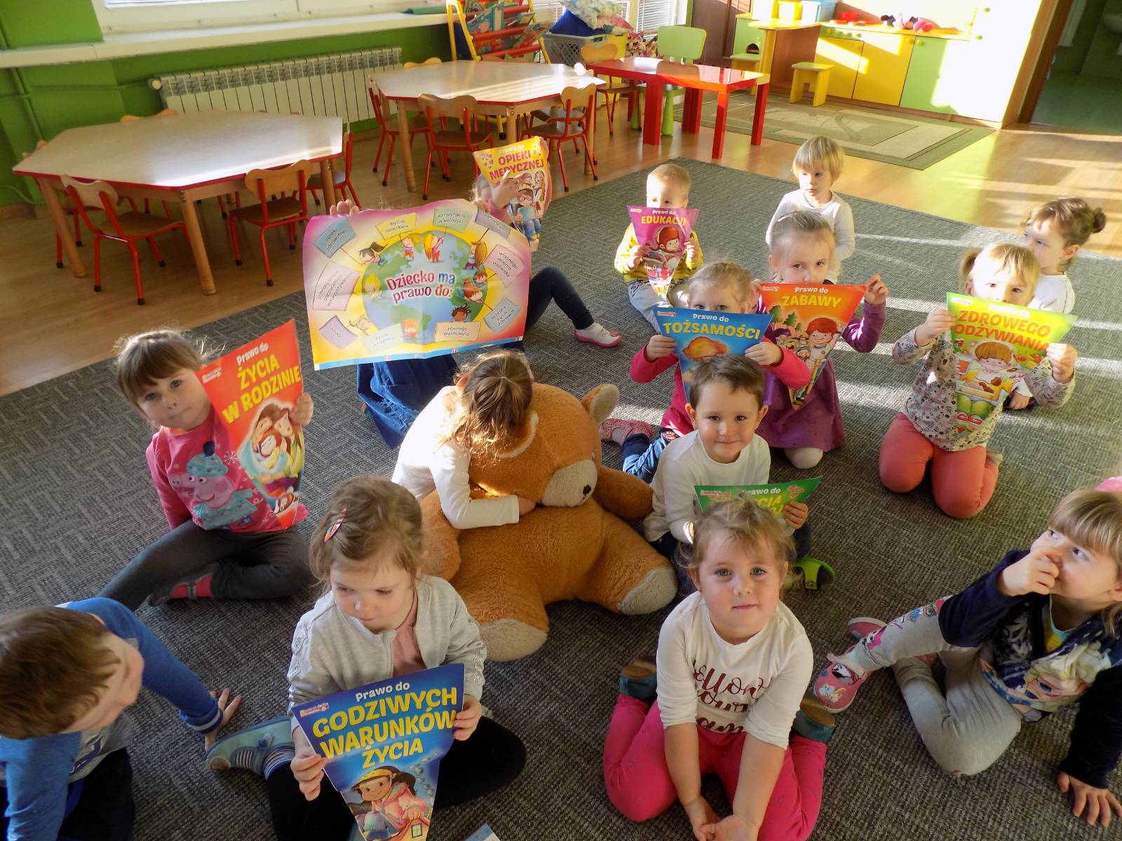 Z okazji tego dnia grupa Małych Podróżników zaprosiła kolegów z grupy Małych Odkrywców na zajęcia koleżeńskie podczas których dzieci poznawały swoje prawa. Miła atmosfera przyjaźni i życzliwości zachęciła przedszkolaki do wspólnych zabaw i tańców przy muzyce.